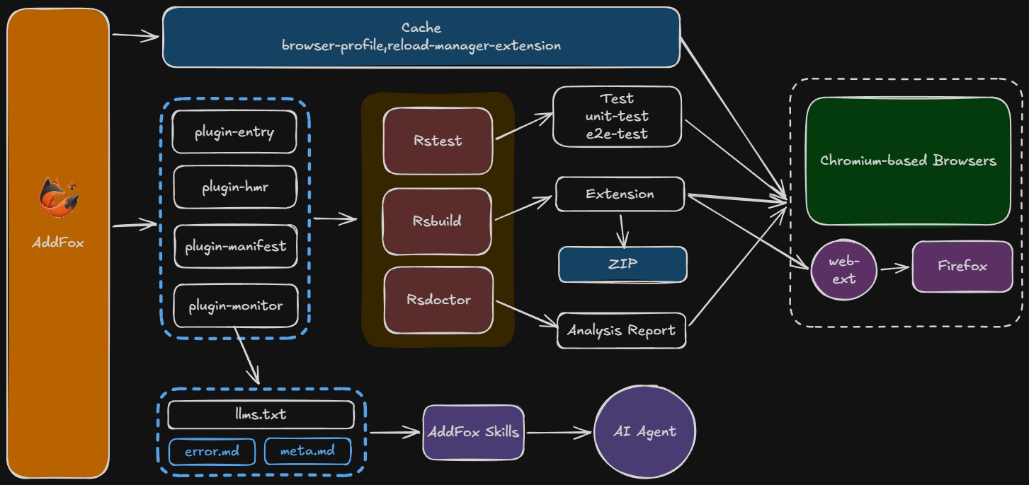 Addfox is a browser extension development framework built on Rsbuild, helping you develop and build Chrome and Firefox extensions in a single project.